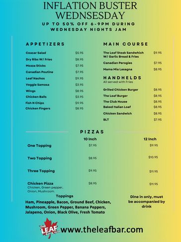 Up to 50% off food and beverage specials Wednesdays from 6-9pm during the Jam